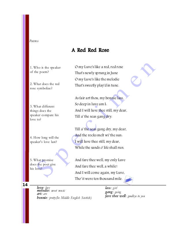 A Red Red Rose Robert Rabbie Burns Red Roses Bonnie Lass Wedding Poems